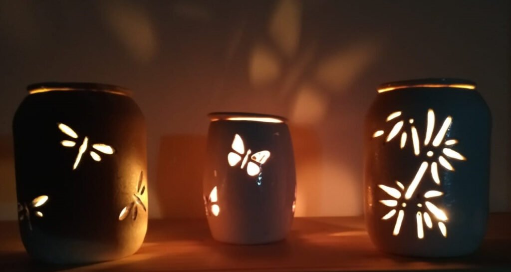-Existem outros métodos, entre eles, o Raku. É uma queima onde os efeitos são fascinantes e únicos e só percebidos quando as peças são lavadas para a retirada dos resíduos, diz Cristina.