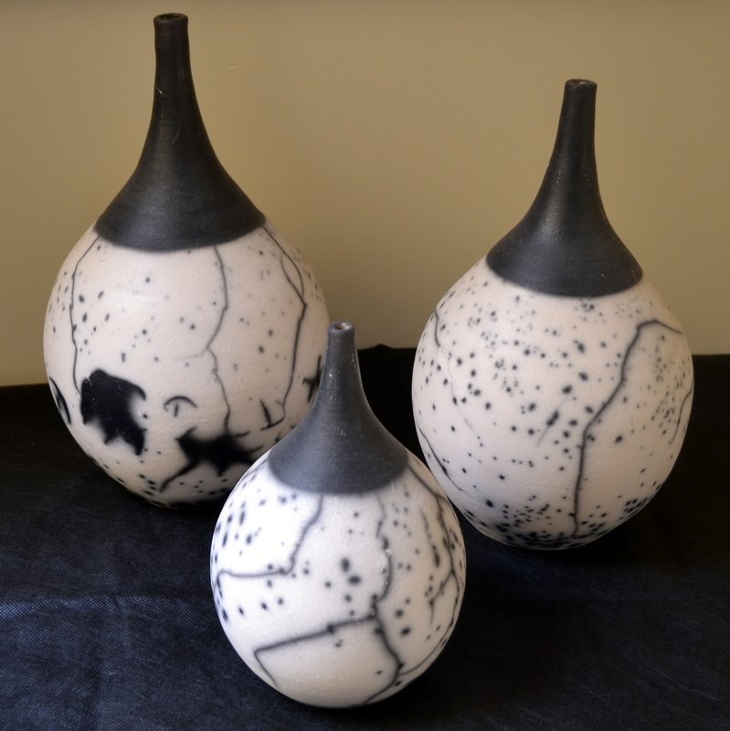 Cristina tem técnicas variadas em transformar o material bruto em lindas cerâmicas. Uma muito utilizada é o ‘Raku’ que é um método de queima que tem origem na manufatura de xícaras para a cerimônia do chá no Japão. As peças são retiradas dos fornos incandescentes e são cobertas com serragem.
