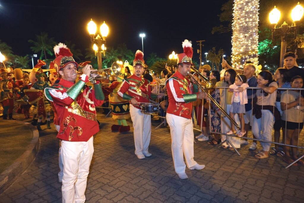 Mas nada superou o momento mais aguardado da noite: a chegada triunfal do Papai e da Mamãe Noel. Atravessando toda a praça ao lado de personagens natalinos, o casal encantado transformou o lugar em um desfile de magia e emoção. Famílias inteiras se aglomeraram para registrar o instante, muitas delas vivendo ali uma experiência pela primeira vez.