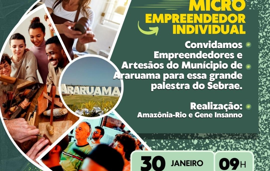 O Sebrae, em parceria com a Amazônia-Rio e o Gene Insanno, vão realizar a palestra “Micro Empreendedor Individual” na próxima segunda-feira, dia 30, às 9h. O evento é gratuito e destinado aos empreendedores e artesãos de Araruama e região. A palestra será com um consultor do Sebrae e terá foco...