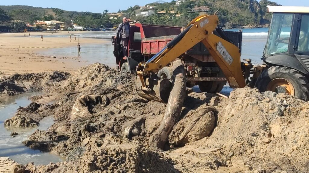 Armação dos Búzios interdita parcialmente a Praia de Geribá para retirada da ossada da baleia Jubarte enterrada em 2020