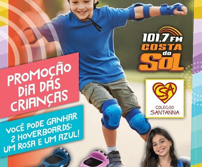 Com a aproximação do Dia das Crianças, a Rádio Costa do Sol, em parceria com o Colégio Sant’Anna e a influenciadora mirim Mimi Blogueirinha, preparou uma promoção especial para presentear a garotada. A iniciativa promete tornar a data ainda mais divertida, oferecendo a chance de ganhar Hoverboards nas cores azul...