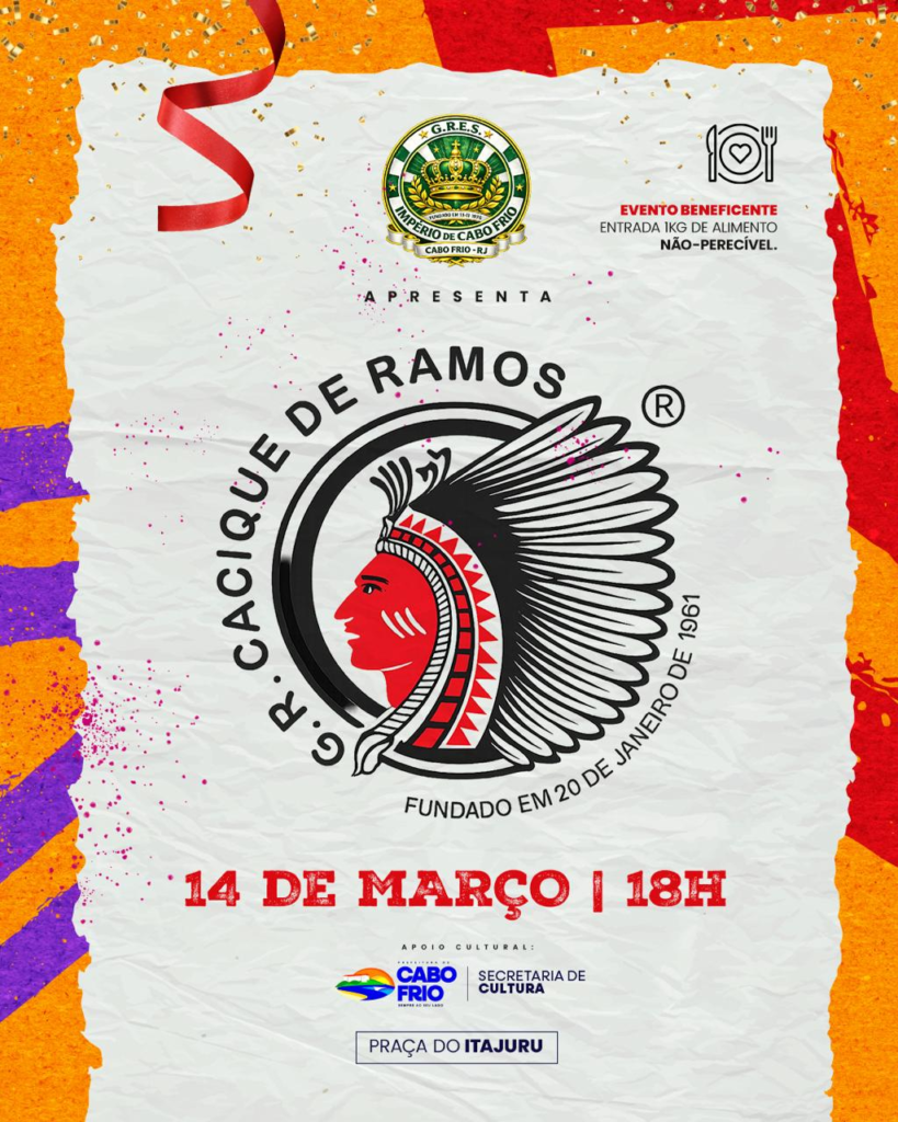 “A Império de Cabo Frio está vivendo esse grande momento com o retorno das atividades da Escola. Nosso desejo é que as pessoas compareçam, se divirtam e celebrem essa retomada, que é muito importante para o processo de fortalecimento das escolas da cidade. A Império de Cabo Frio faz parte da memória do Carnaval da cidade, é isso que estamos resgatando, unindo a nossa Escola e o Cacique de Ramos, nessa grande manifestação cultural que teremos na quadra da Praça do Itajuru”, finalizou.