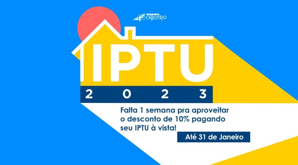 O contribuinte de Cabo Frio tem até a próxima terça-feira (31) para garantir o desconto de 10% no IPTU 2023. Para isso, basta fazer o pagamento do imposto em cota única, ou seja, do valor à vista. A Secretaria de Fazenda recomenda que, para evitar filas, o procedimento seja feito de forma inteiramente on-line, pelo site www.fazenda.cabofrio.rj.gov.br.