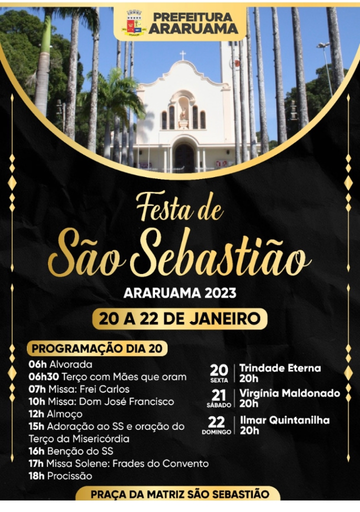 Festa de São Sebastião 2023 em Araruama vai contar com alvorada, procissão e shows musicais