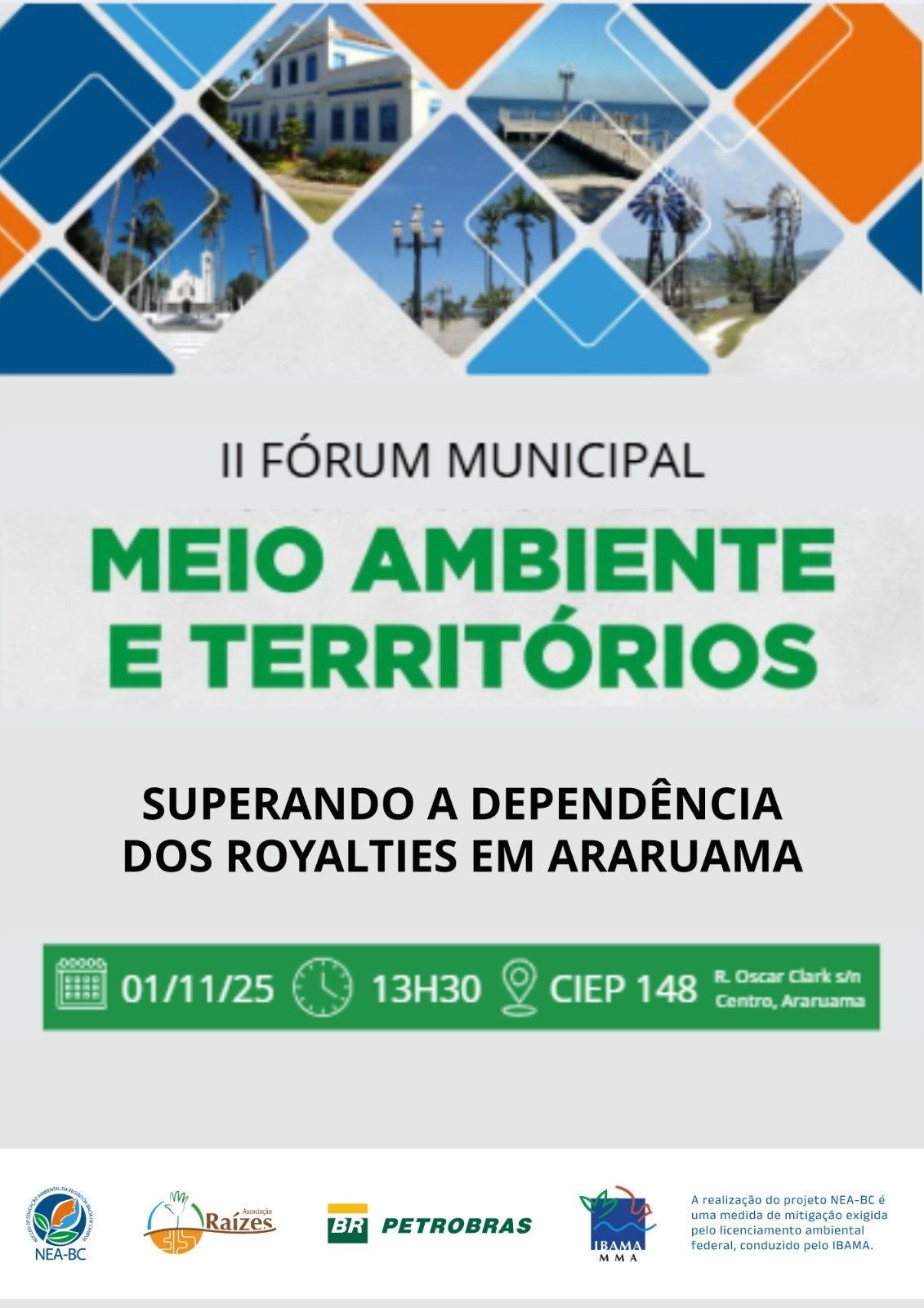 Dependência dos Royalties em Araruama”, acontecerá no dia 1º de novembro, a partir das