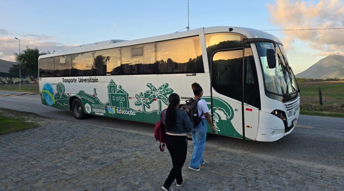 Fim do expediente, hora de estudar. Todos os dias, às 17h, em Sampaio Corrêa, um grupo de funcionários de empresas do Polo Industrial de Saquarema sai do trabalho em direção a faculdades. São bolsistas do Conexão Universitária que, em busca de mais qualificação, embarcam no transporte da Prefeitura de Saquarema rumo a salas de aulas.