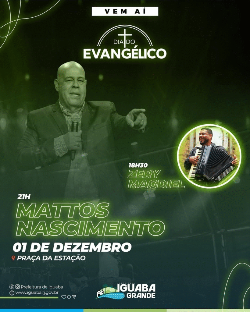 A programação terá início às 18h, com a apresentação do cantor Zery Magdiel, que abrirá o encontro com momentos de adoração e celebração. Já às 21h, o palco receberá Mattos Nascimento, um dos nomes mais consagrados da música gospel nacional, reconhecido por sua trajetória e influência no cenário evangélico brasileiro.