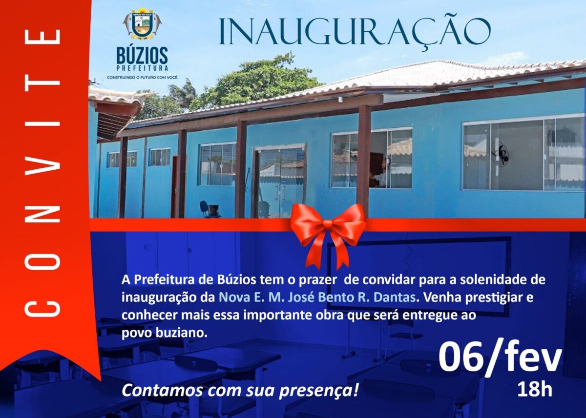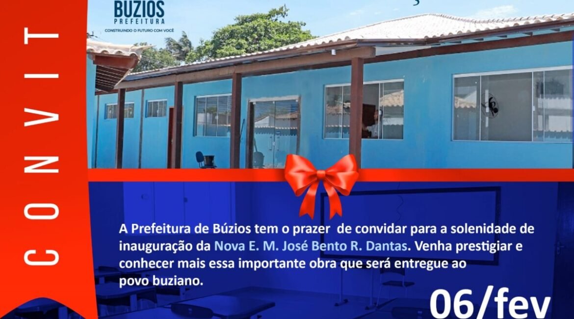 O município de Búzios, por meio da Secretaria de Educação, Ciência e Tecnologia realizará na próxima segunda-feira (06), às 18h, a inauguração da Escola M. José Bento Ribeiro Dantas. A unidade que completou 70 anos, em 24 de setembro de 2022, foi totalmente reformada com material de alta qualidade, além de ganhar novos equipamentos, como ventiladores, lousa branca, carteiras e cadeiras, novos lavabos, aparelhos de ar-condicionado, entre outros.