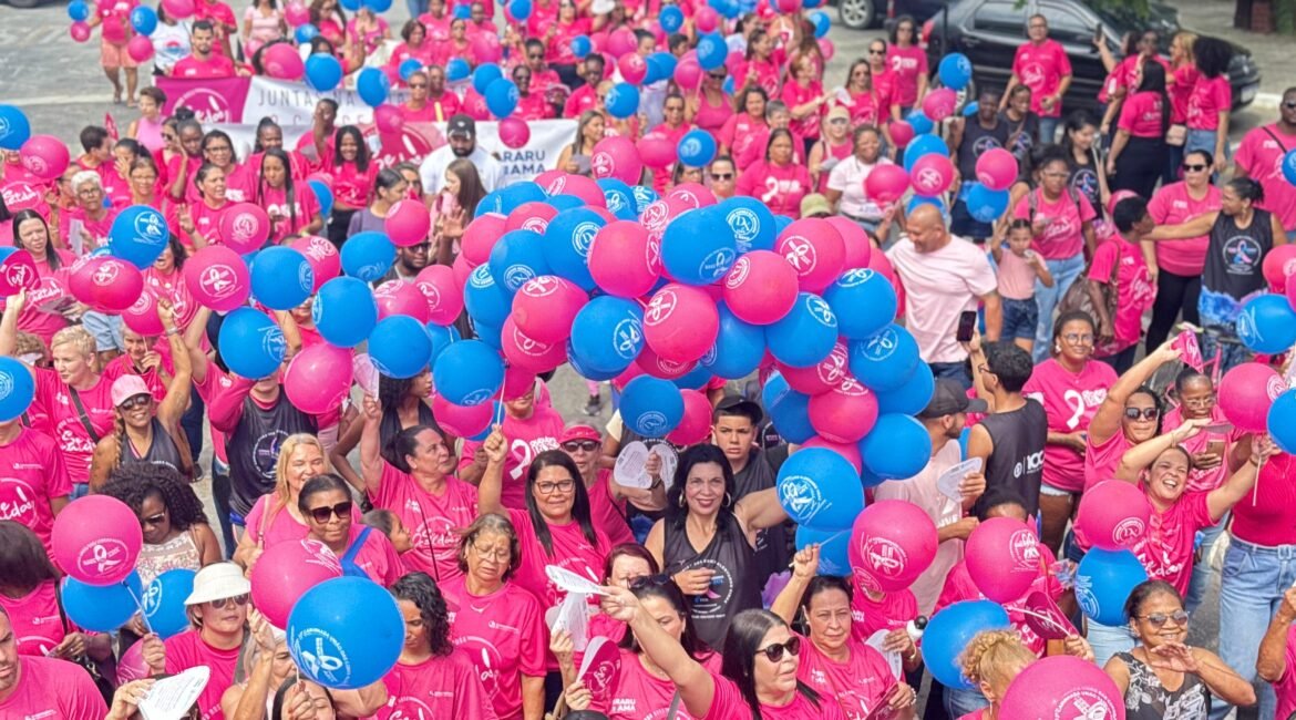 A Prefeitura realizou, neste sábado (18), uma grande ação em celebração ao Outubro Rosa, mês dedicado à conscientização sobre a prevenção e o diagnóstico precoce do câncer de mama. O evento reuniu mais de 500 pessoas na Praça da Bíblia e numa Caminhada pela Avenida Getúlio Vargas.