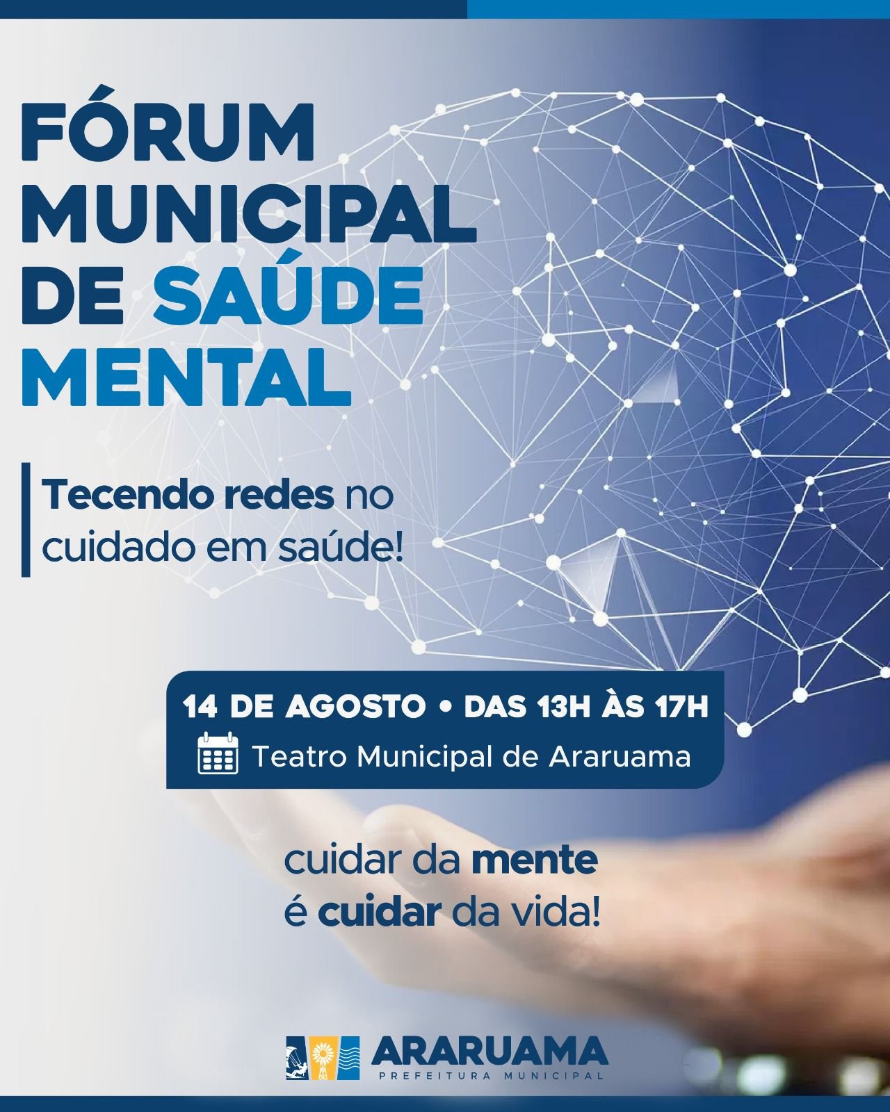 A Prefeitura de Araruama, por meio da Secretaria Municipal de Saúde e do Programa de Saúde Mental, realiza o Fórum de Saúde Mental: Tecendo Redes no cuidado em saúde. O evento é um espaço coletivo de escuta, construção e fortalecimento das políticas públicas voltadas à saúde mental, pautado pelo compromisso com a promoção de práticas humanizadas, intersetoriais e antimanicomiais.