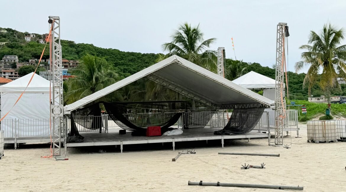 Prefeitura de Arraial do Cabo avança na montagem da Arena dos Blocos para o Carnaval 2026