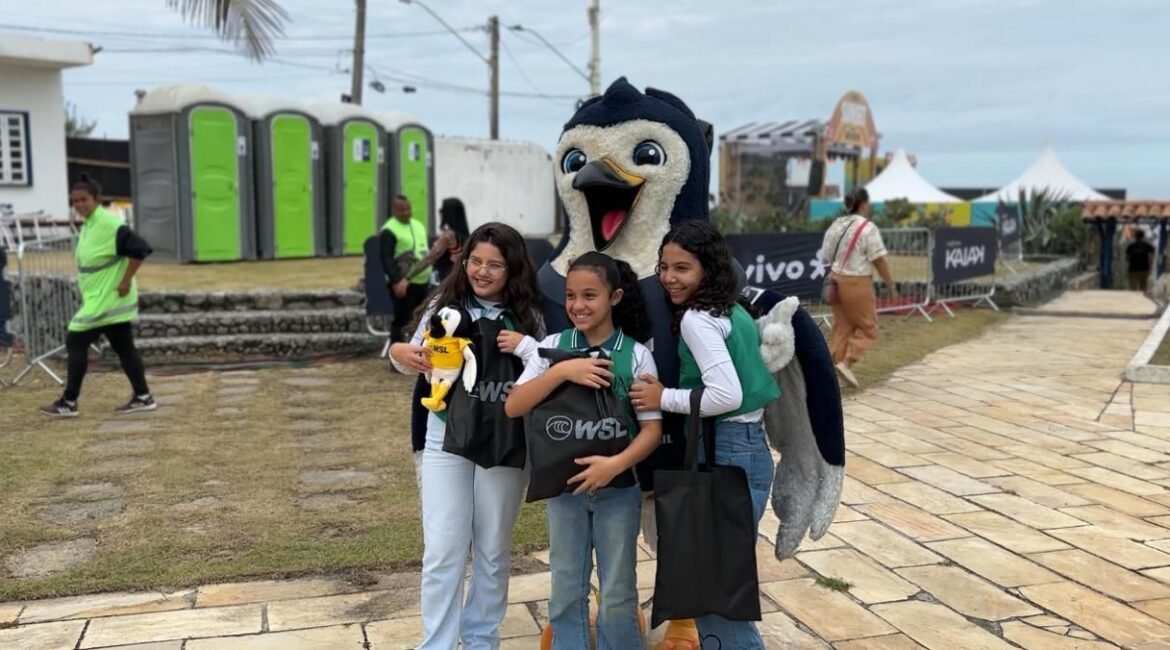 Três “jornalistas-mirins” da Escola Municipal Professora Osiris Palmier da Veiga, em Saquarema, na Região dos Lagos, ganharam um presente de Dia das Crianças ao fazerem um tour pelos bastidores do Challenger Series, a divisão de acesso à elite mundial do surf, que ocorre na cidade. As “repórteres” do jornal Osíris News conheceram, neste sábado (11), a área de jurados, de transmissão do evento e, claro, a sala de imprensa. Elas também fizeram uma entrevista com o presidente da World Surf League (WSL) da América Latina, Ivan Martinho.