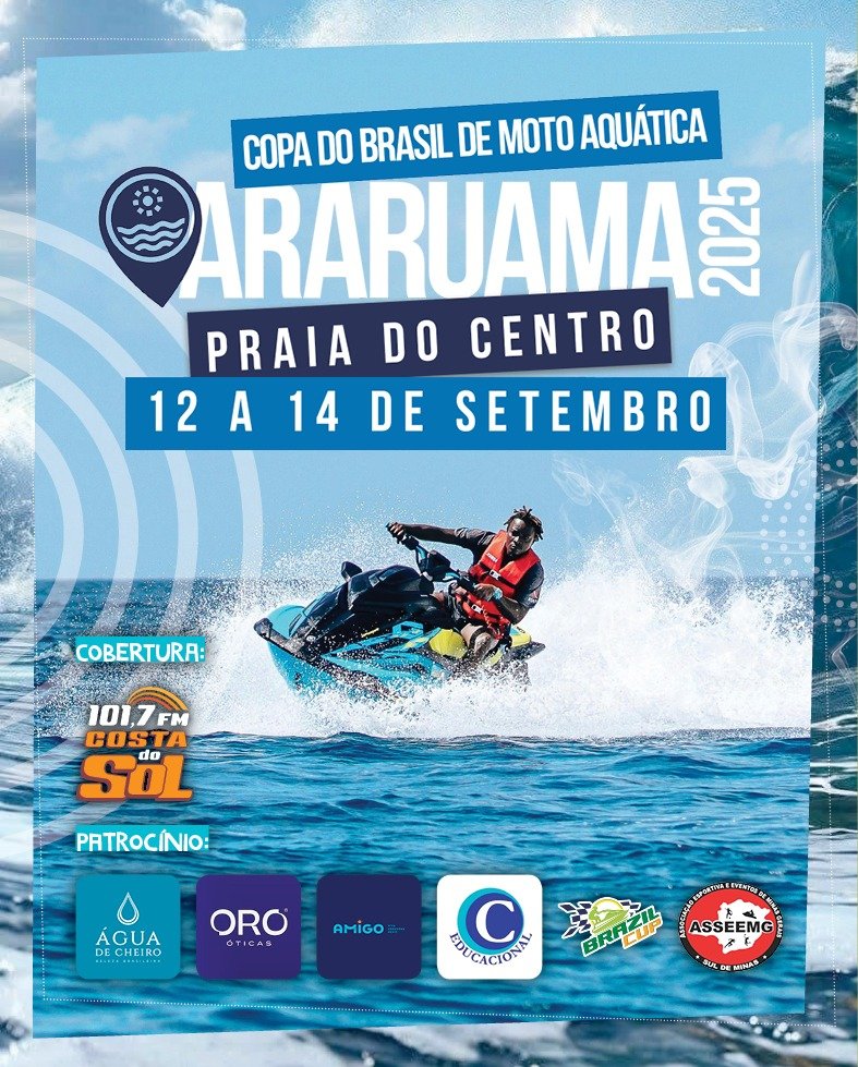 A Lagoa de Araruama será palco da Copa Brasil de Moto Aquática, um dos maiores eventos do segmento náutico do país, que acontece entre os dias 12 e 14 de setembro, na Praia do Centro.