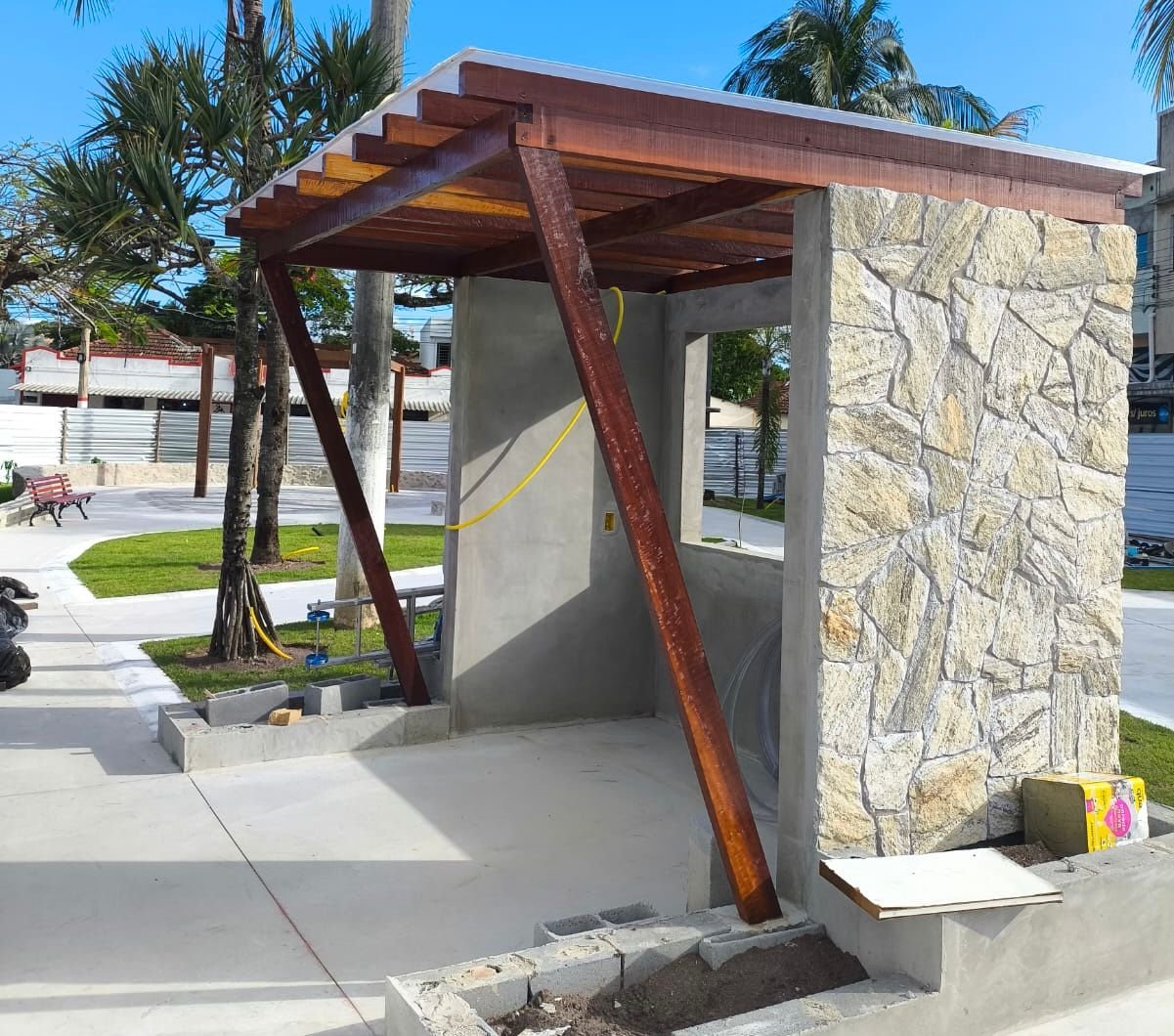 Um novo ponto de ônibus foi construído dentro do padrão moderno adotado pela Prefeitura, o que oferece mais conforto e acessibilidade. A praça também ganhou um pergolado e bancos, um cantinho perfeito para moradores e visitantes sentar para conversar ou simplesmente relaxar por alguns minutos.