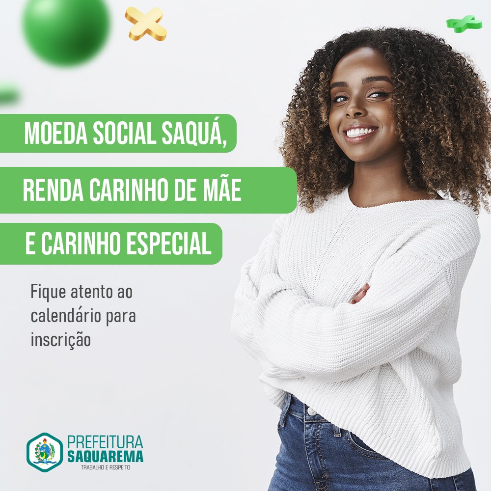 Além da Moeda Saquá, a Secretaria Municipal de Desenvolvimento Social também dará inicio ao cadastro dos Programas “Renda Carinho de Mãe” e “Renda Carinho Especial”.