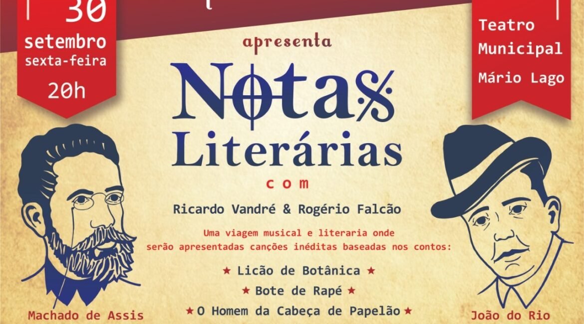 O Teatro Municipal Mário Lago recebe nesta sexta-feira (30), às 20 horas, o espetáculo “Notas Literárias”, contemplado no edital Saquarema Musical, lançado pela Prefeitura, por intermédio da Secretaria Municipal de Cultura.