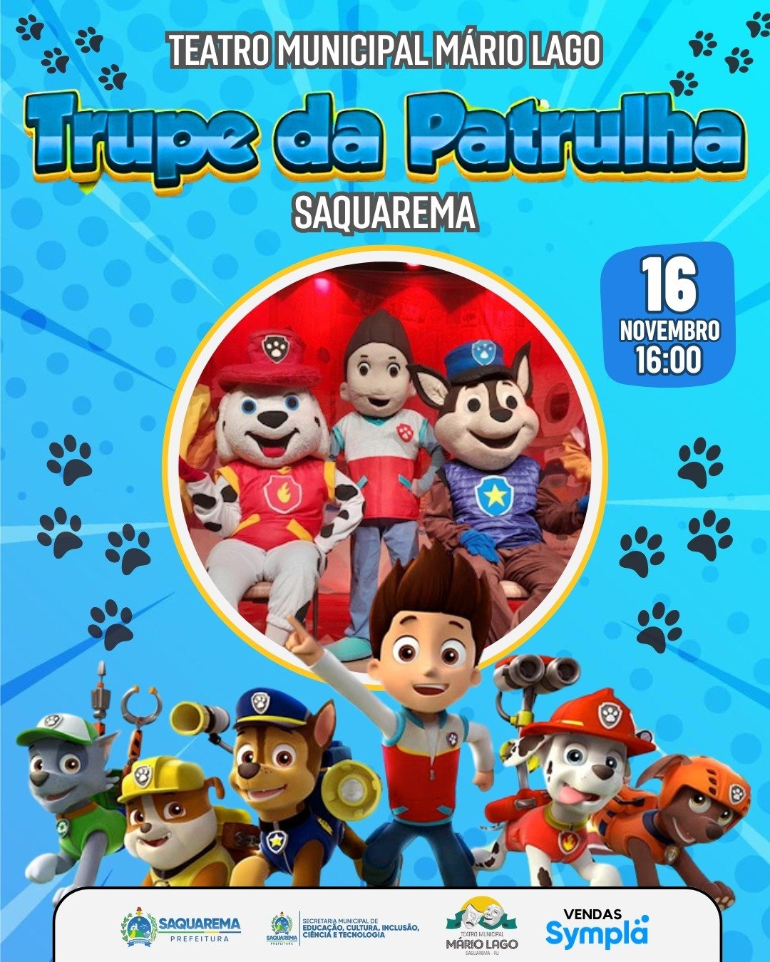 O Teatro Municipal Mário Lago receberá, no domingo, dia 16 de novembro, às 16 horas, o espetáculo infantil Trupe da Patrulha.