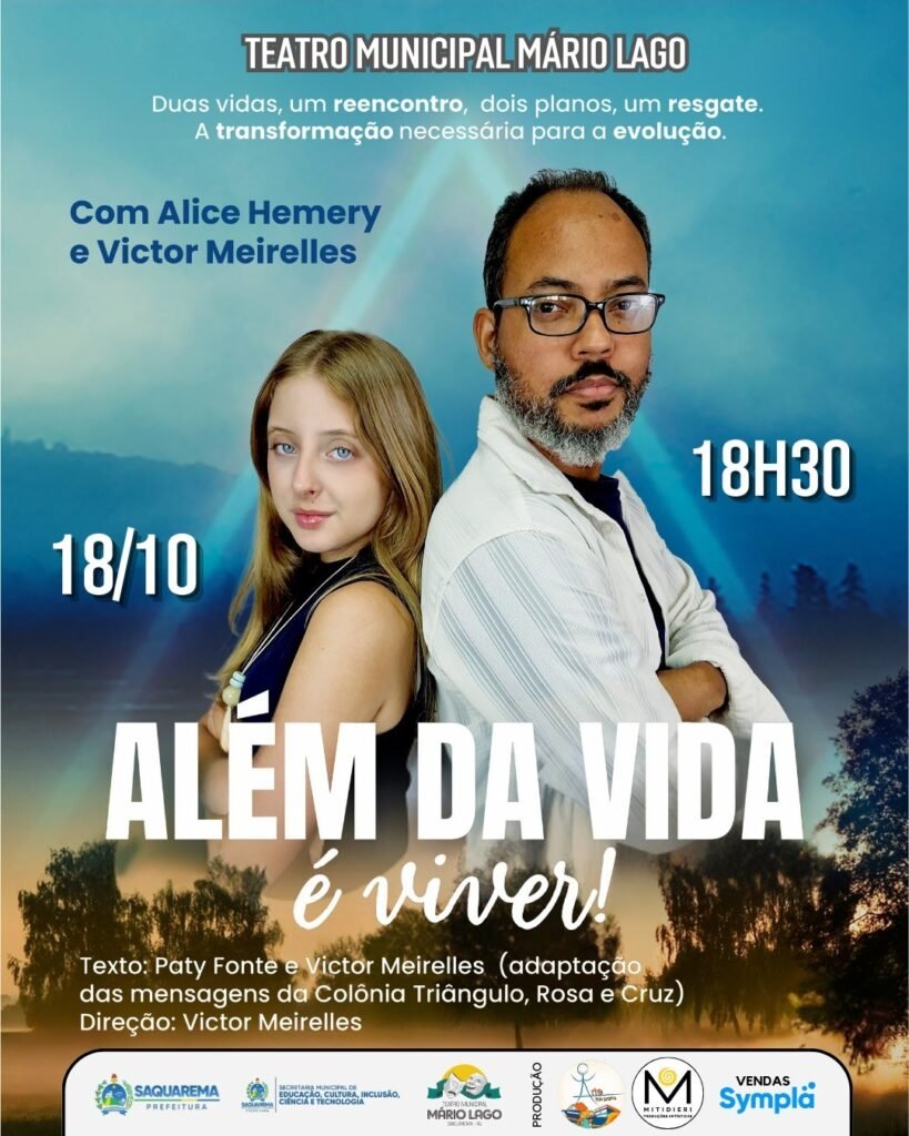 O Teatro Municipal Mário Lago apresenta ao público de Saquarema, no próximo sábado, dia 18 de outubro, às 18h30, o espetáculo “Além da Vida é Viver”, uma história de reencontro que ultrapassa os planos, o tempo e o espaço, materializando a transformação que resgata o amor e a vontade de viver.