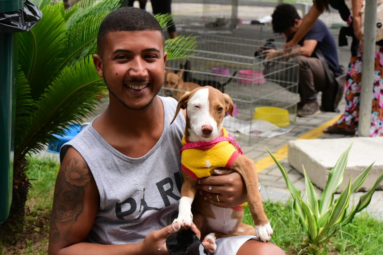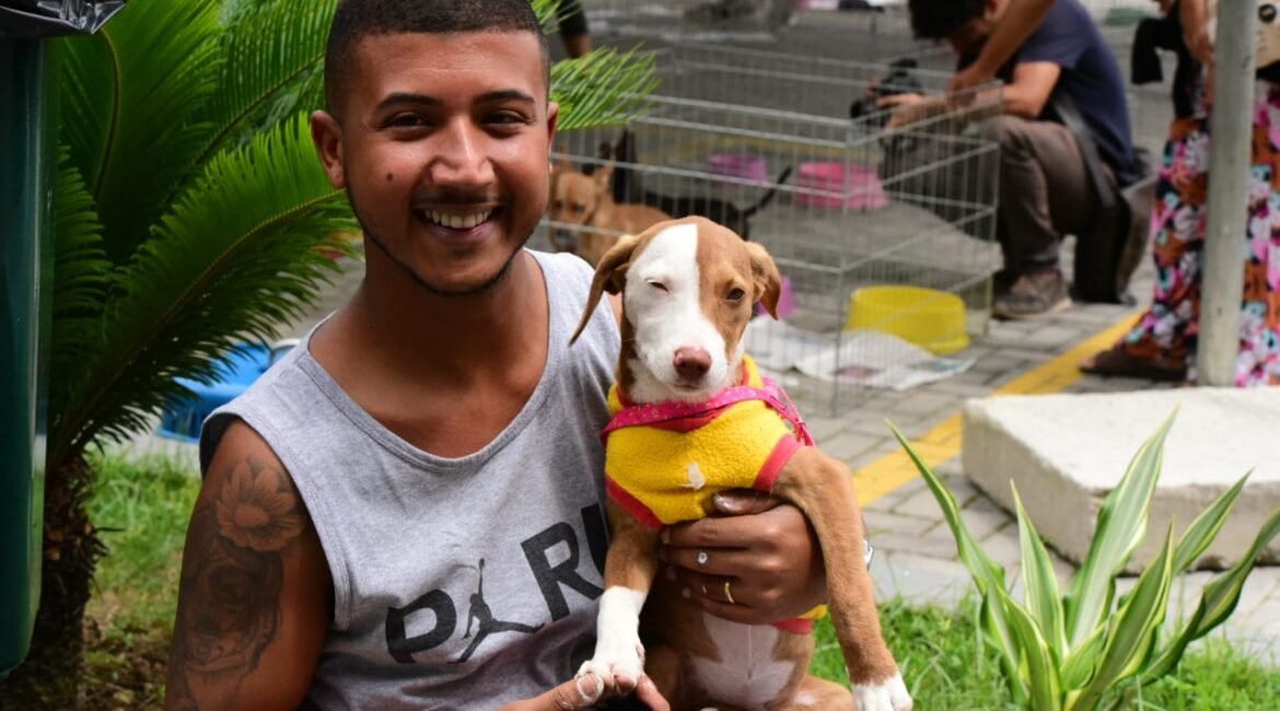 Morador do Centro, Leonardo Soares, de 27 anos, passou pela feira e se apaixonou pela cadelinha Gaia. “Achei ela linda e vou levar mais uma integrante para a família. Já tenho uma vira-lata e um dálmata”, disse Leonardo.